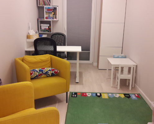 Gabinet logopedyczny to miejsce, w którym skupiam się wyłącznie na moim pacjencie i dążę do poprawy jego stanu zdrowia. Podczas zajęć w moim gabinecie logopedycznym pacjent jest poddany wnikliwej obserwacji i testom logopedycznym (m.in. badanie słuchu fonematycznego), otrzymuje diagnozę operacyjną i nominalną oraz program terapii. W gabinecie logopedycznym, w moich działaniach dominuje Metoda Dyna Lingua M.S. i metoda glottodydaktyczna. Stosuję między innymi takie metody jak relaks psychostymulacyjny, ćwiczenia oddechowo- głosowe i rozwibrowujące. Wprowadzam ćwiczenia energetyzujące, ćwiczenia artykulacyjne. Jeśli tego wymaga terapia (najczęściej w przypadku dyslalii czy dyzartrii) wykonuję masaż artykulatorów (twarzy, jamy ustnej) oraz stymulację wędzidełka podjęzykowego. Dla poprawy koordynacji miedzyzmysłowej, zestrojenia ruchów ciała z wypowiadanym słowem oraz uwrażliwienia na rytm, (co ma związek z rozumieniem i nadawaniem mowy) stosuję ćwiczenia z zakresu logorytmiki i arteterapii.